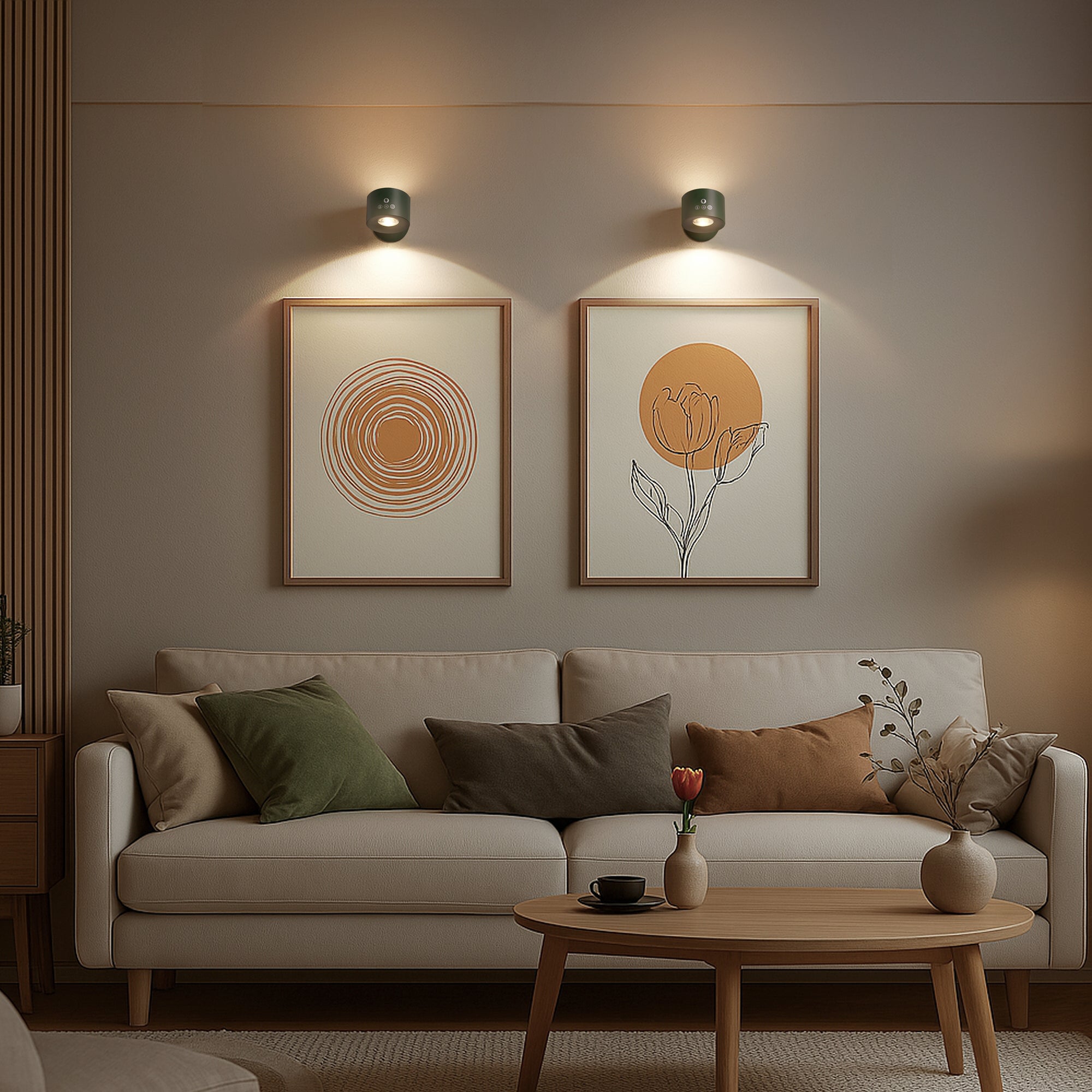 Its wide glow fills your space with a calm warmth, while a focused beam brings out the details in your favorite artwork. With its 360° rotating magnetic mount, you can easily direct the light to the perfect angle.