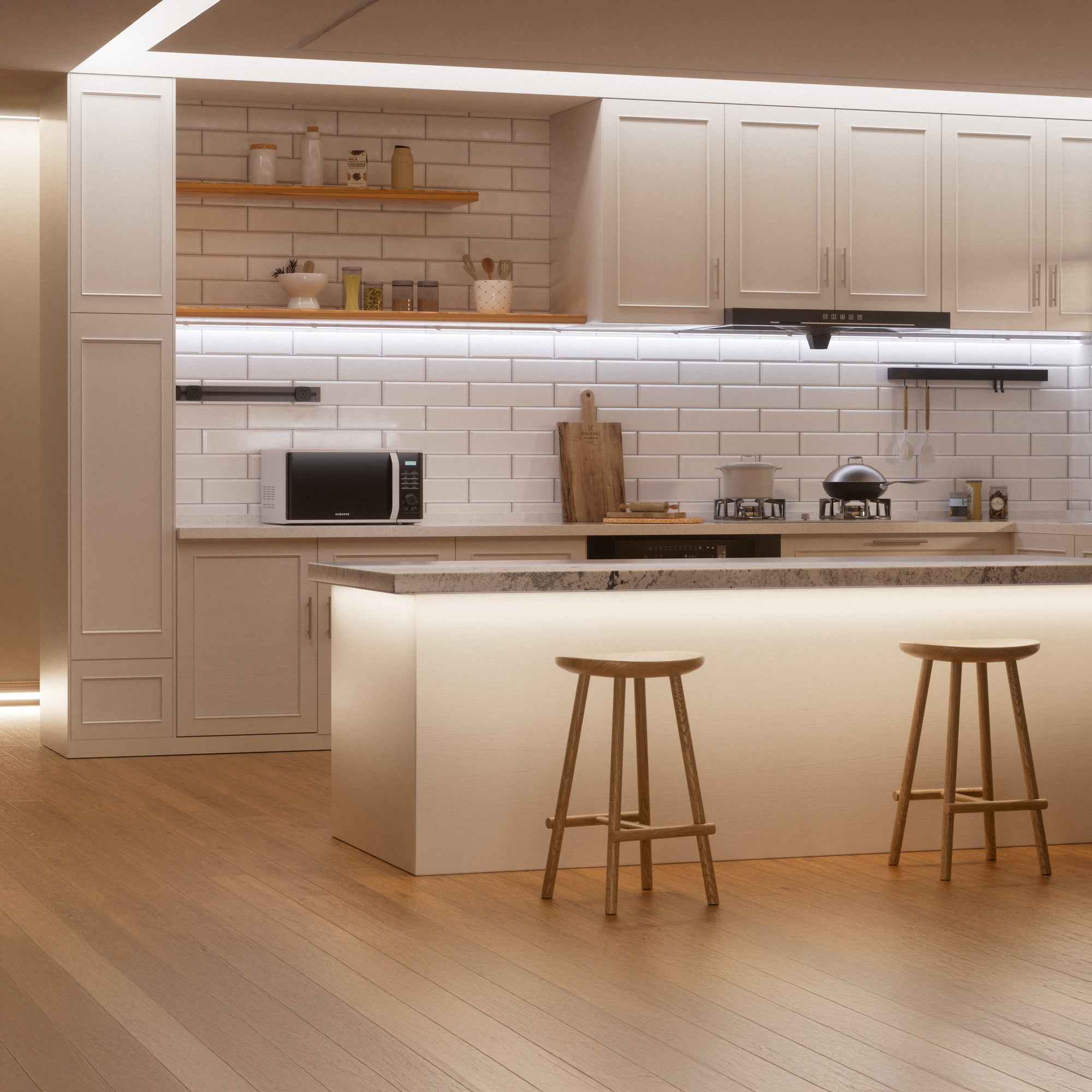 - 🍳Under kitchen cabinets: brighter prep lighting, without dotted “cheap strip” glare